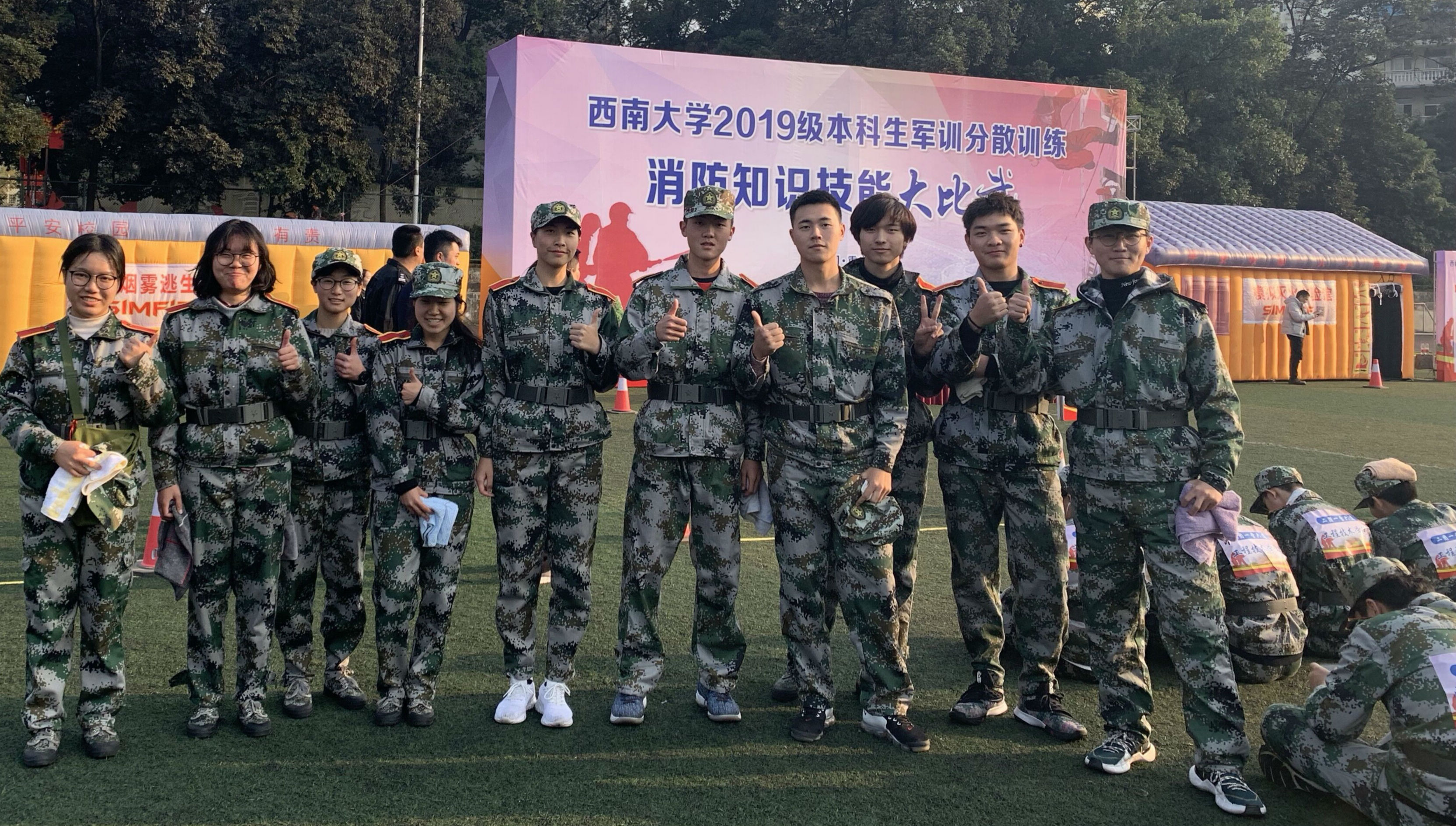 为提高全校师生消防安全意识,有效预防和减少校园火灾事故发生,继“119消防日”宣传活动及消防知识技能培训之后,西南大学于2019年12月7日在第三运动场圆满举行西南大学2019级本科生军训分散训练—消防知识技能大比武活动。农学与生物科技学院十名参赛选手在充足的消防知识储备与积极准备下,沉着冷静、一气呵成地完成比赛,以总分81分多的优异成绩获得全校第一名的好成绩。