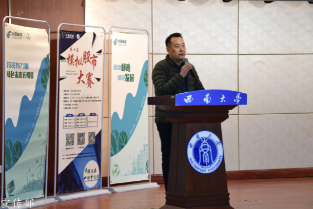 12月8日下午2点30分,西南大学第十届“中邮为桨,助梦远航”闭幕式暨颁奖典礼于经济管理学院B101室举行。中国邮政集团重庆市北碚区分公司苗洛涛副总经理、中国邮政集团重庆市北碚区分公司客户营销中心段文明经理、中国邮政集团重庆市北碚区分公司渠道平台部罗钊经理、学院团委书记陈丽华老师出席本次闭幕式。200余名大赛选手到场参加。
