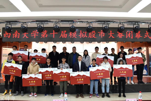 活动最后,嘉宾与获奖选手合影留念,意味着第十届模拟股市大赛圆满落下帷幕。