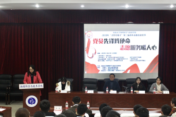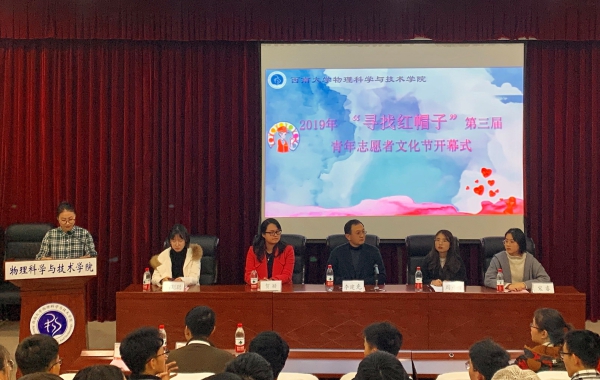 11月29日晚,学院第三届“寻找红帽子”青年志愿者文化节开幕式在物理大楼小阶梯教室举行。学院党委书记李建光,团委书记贺颖、2019级辅导员周冬叶,以及学院第十四届团委学生会主席宋睿、副主席易聪聪、外国语学院志愿者部部长刘嘉骥参加了活动。学院“红帽子”青年志愿者服务队成员、“红帽子”本科生党员先锋队队员、科普创作社成员,以及各年级本科生代表来到了活动现场。仪式由学院团委副书记叶彦伶主持。
