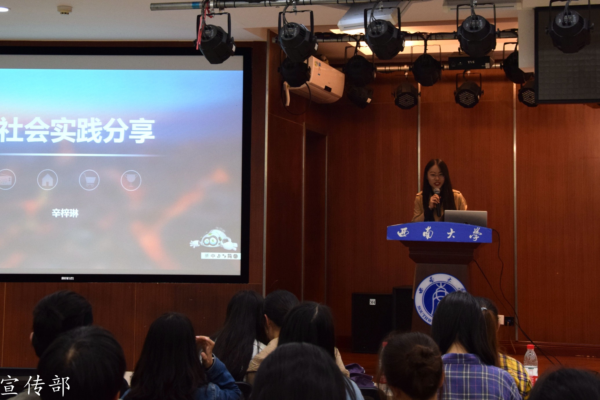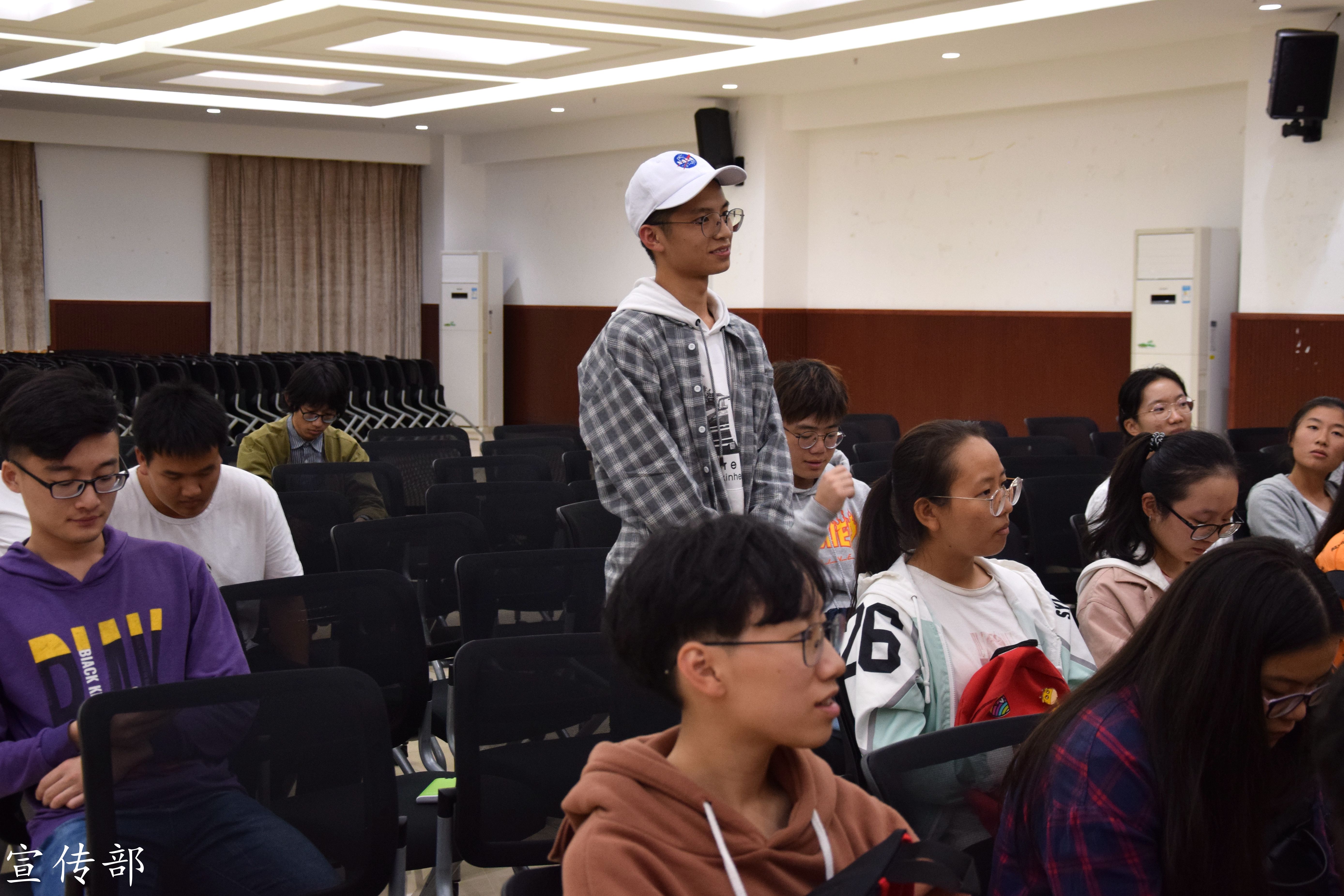 紧接着,合唱表演《我和我的祖国》过后,青年志愿者联合会程诺同学围绕“三下乡”活动的概况、组队要求及申请流程、活动内容构成、优秀案例解析四个方面进行解说,并对现场同学提出的问题进行解答。