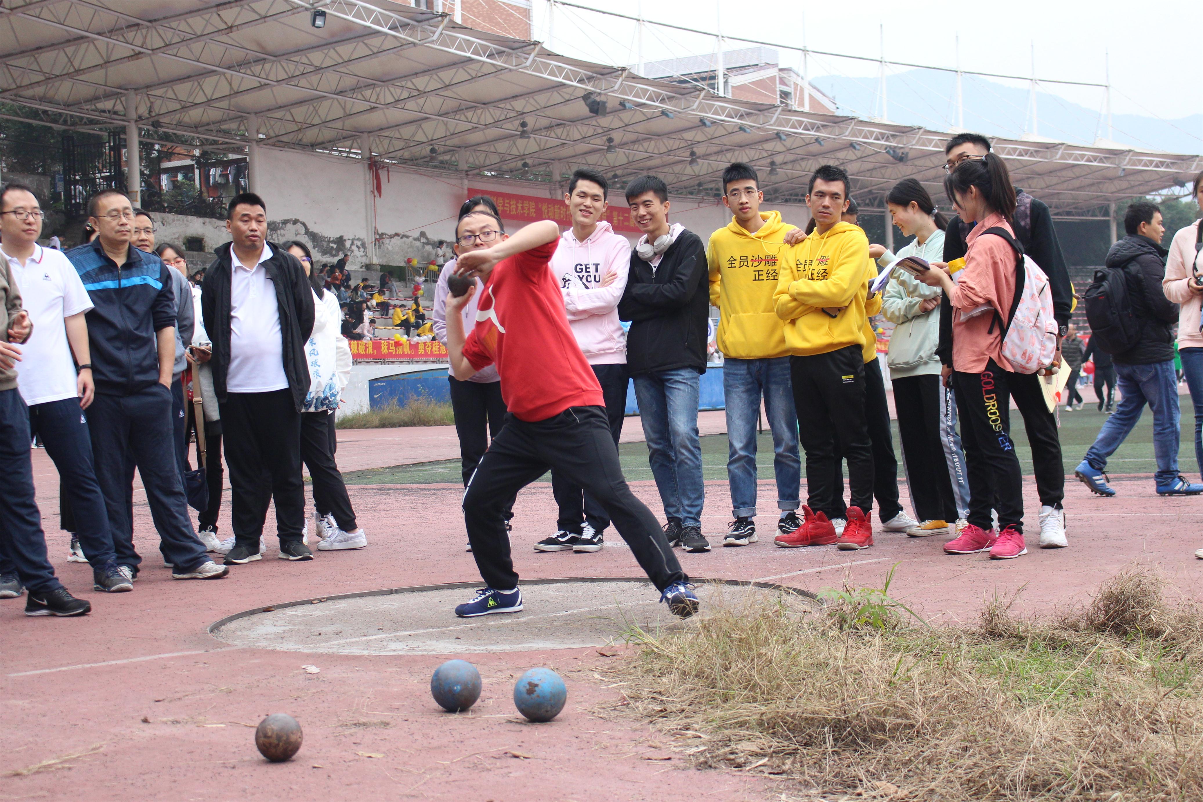 开幕式结束后,教工组比赛随即开始。老师们热情高涨,积极投入到滚铁环、风火轮等九个比赛项目中。比赛现场气氛热烈,在短跑项目中,老师们如离弦的箭,奋力奔向终点;拔河项目中,老师们巧用摩擦力知识,放低重心齐心协力;铅球项目中,老师们精准发力,抛出一条条优美的抛物线。学生们备受感染,在赛道边为老师们加油助威。