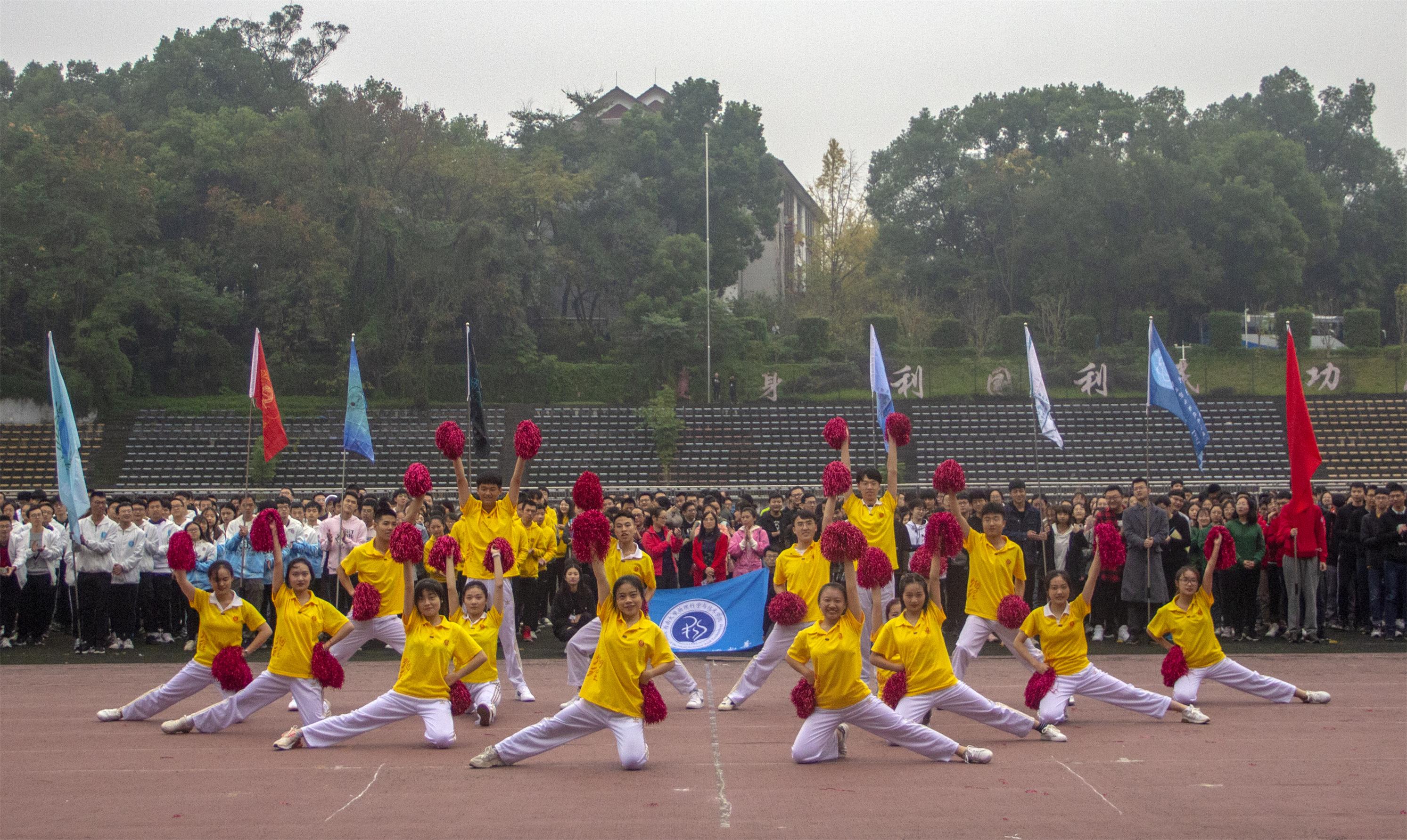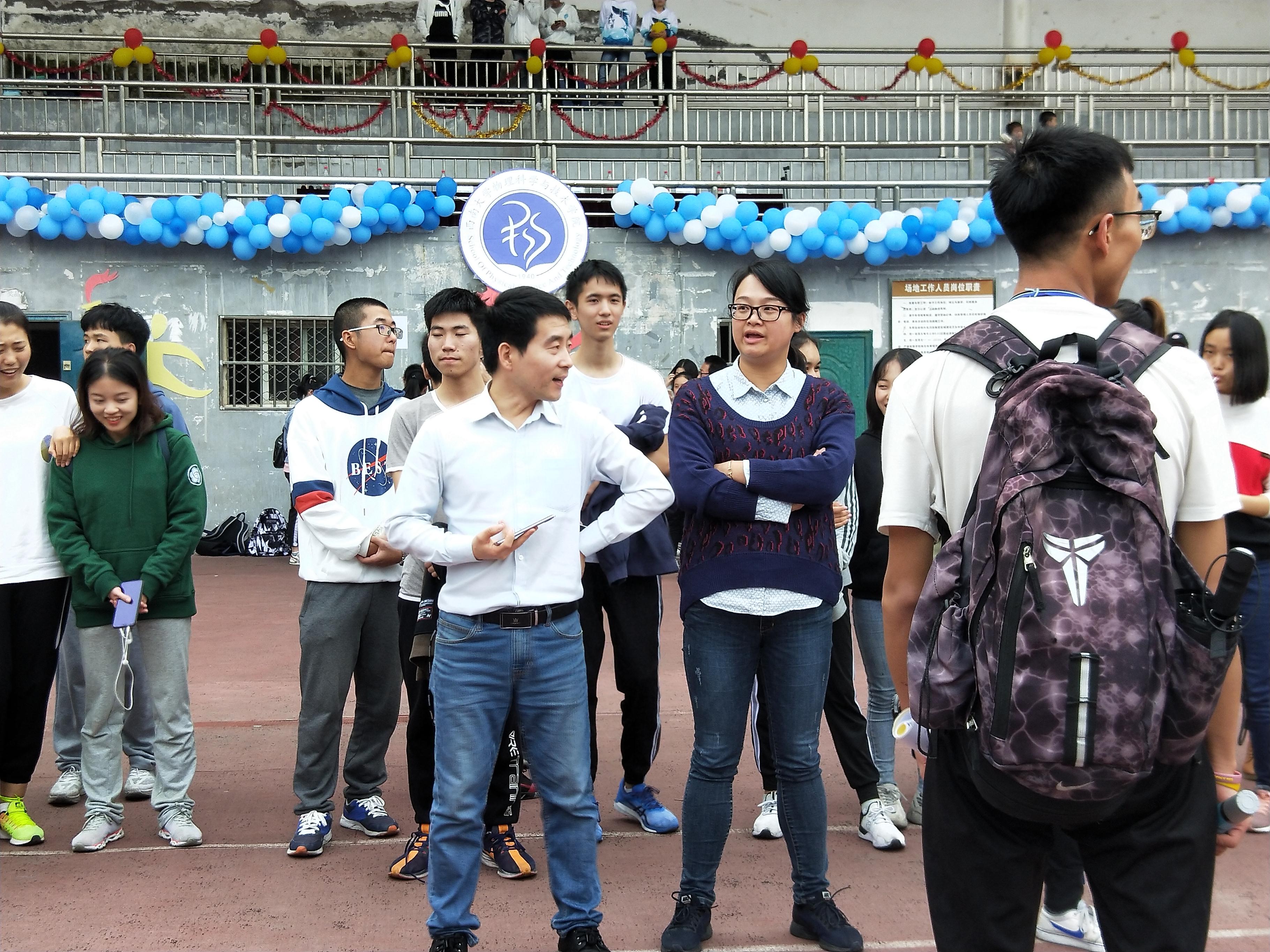 11月9日上午8:30,运动会开幕在庄严肃穆的国歌声中拉开了帷幕。开幕式由副院长袁宏宽主持。学院党委副书记刘汭雪代表学院党委、行政致辞,她表示在十月刚刚结束的教育部物理学师范专业二级认证工作反馈会上,专家们对我院“以学生中心”的育人理念和丰富的第二课堂活动给予高度肯定,一年一度的田径运动会是学院贯彻“三全育人”教育思想的重要载体,学院将继续努力营造全民健身的良好氛围,带领全院师生员工以实际行动迎接历史的新时代。随后,袁虹凯、何杰分别代表裁判员、运动员宣誓。学院院长熊祖洪宣布运动会正式开幕。青春活力、动感十足的开场舞《物韵青春》顿时点燃全场的热情。