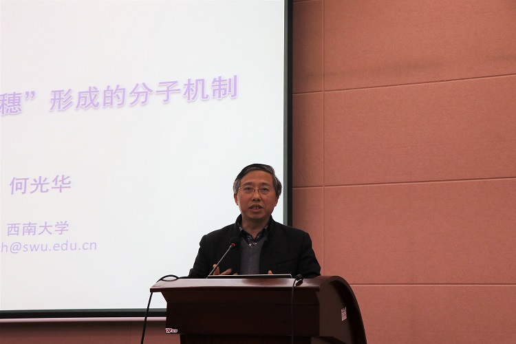 演讲答辩环节结束,唐章林副院长对本次大赛做简要点评。他对选手们的表现给予高度肯定:参赛作品涉及面广,既展现同学们对科学研究、社会调查的浓厚兴趣,又展示了同学们在科学研究、论文写作、社会调查方面的写作水平。但同时在答辩中也呈现出参赛选手在科研中存在的问题,各评委老师已给予批评指正,希望同学们加以完善。唐院长还指出,扎实的科学理论知识,掌握正确的科技论文写作方法,以及集中一个主题多方面分析是本科生做科研应具备的基本素质。比赛最后,何光华院长亲自上台示范,以“水稻‘3花小穗’形成的分子机制”作为示例作简短而规范的学术报告示范,从论文报告具体内容格式、PPT的制作到参考文献的引用,何院长语重心长地教导让同学们受益匪浅,现场响起热烈的掌声。