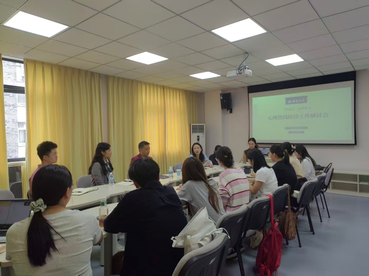 为进一步提升心理热线服务的专业化、规范化水平,更好满足全校学生的心理健康服务需求。2025年10月13日,心理中心特邀学校心理学部知名专家杨发辉,为中心全体热线接待员开展专题培训与问题研讨。研讨会由心理中心主任吴娟主持,中心部分专职教师及全体热线接待的心理咨询师共同参与。