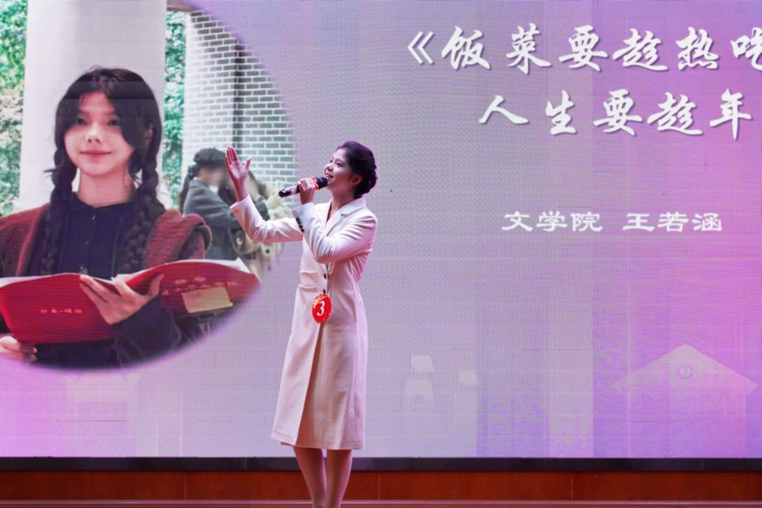 决赛现场,来自全校36个学院的参赛选手依次登台,围绕“春风化雨润桃李,言传身教育芳华”这一主题,结合自身经历与感悟,用真挚的语言、鲜活的事例,生动讲述了他们眼中好老师的感人故事与崇高形象,深情诠释了师德的深刻内涵与教育力量。
