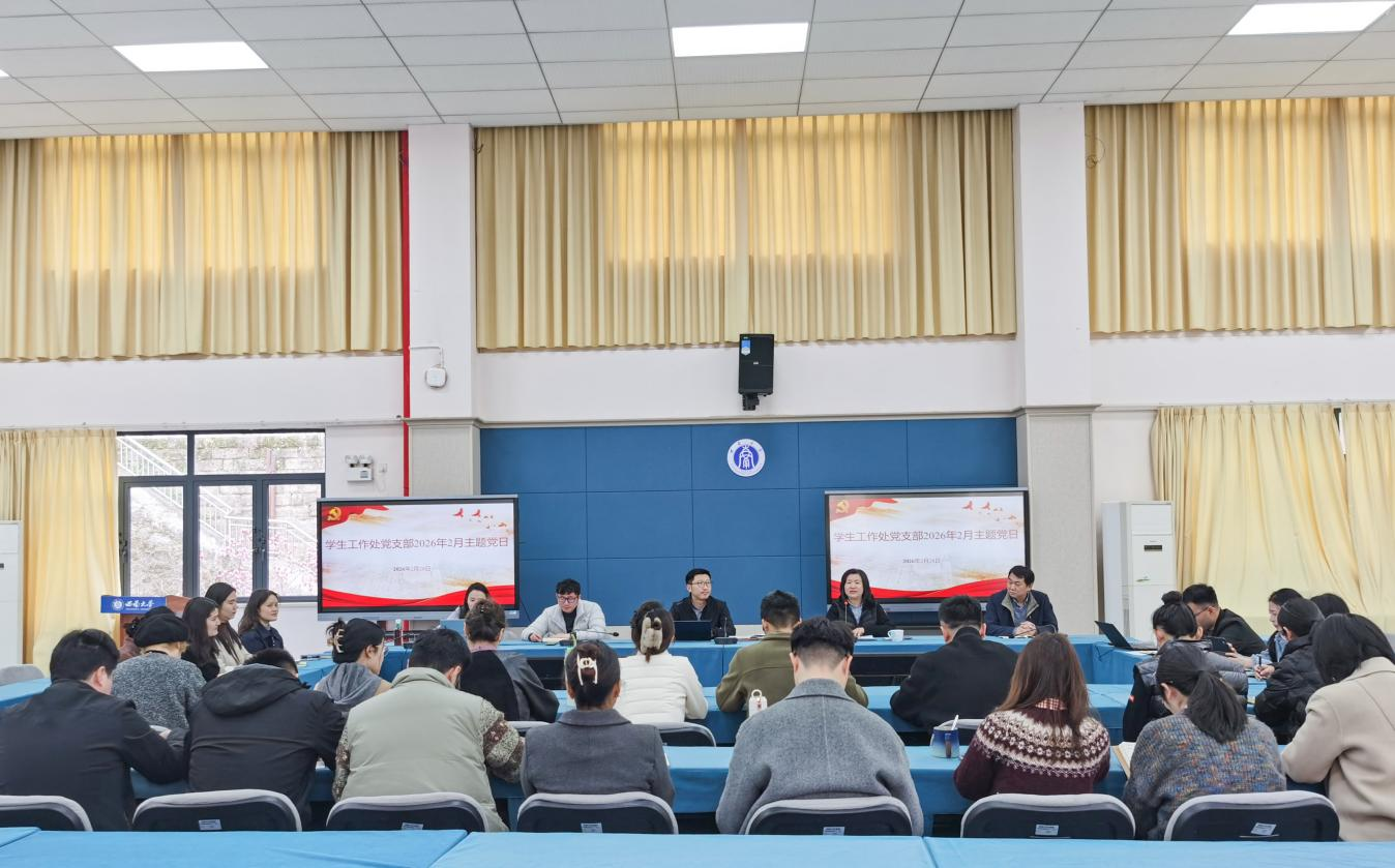2月28日,学生工作处党支部在第二学生活动中心420会议室开展2026年2月主题党日活动,全体同志学习了习近平总书记在二〇二六年春节团拜会上的重要讲话精神,罗军、朱干、吴东倩、孙漫丽等同志分享了寒假学习体会和实践感悟,于涛同志传达了学校2026年春季学期开学干部大会精神,并就党委学生工作部新学期工作作了方向性部署。