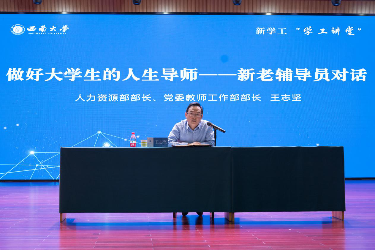 下午,王志坚部长以“做好大学生的人生导师——新老辅导员对话”为主题,为辅导员们作了交流分享。他首先结合自己担任辅导员等人生经历,阐述了辅导员工作的价值与意义,并通过多个具体工作案例,分享了自己担任辅导员的思索和感悟。二是针对辅导员的职责履行和职业发展,向大家提出“热爱本职工作”、“提升专业本领”、“增强沟通处置能力”、“培养核心学生骨干”等建议,并从人力资源工作角度介绍了辅导员的几种职业发展方向。三是与现场辅导员进行互动交流,就大家提出的如何平衡事务性工作、如何做好家校协同育人等问题一一进行解答,鼓励大家加强理论学习,保持快乐心态,用心用情做好本职工作。