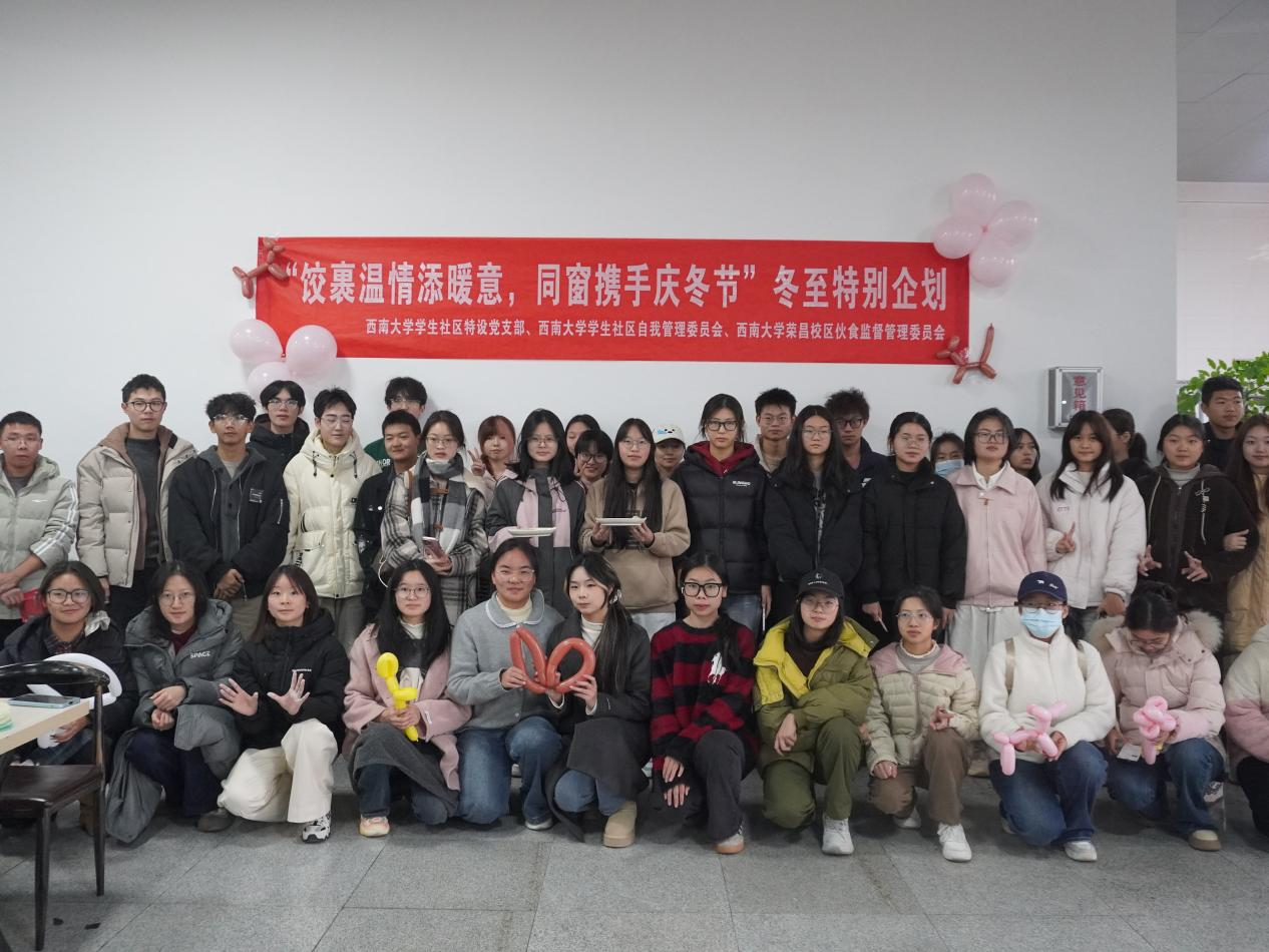为弘扬中华优秀传统文化,促进中外学生互动融合,丰富社区育人实践内容,12月14日,由西南大学荣昌校区党工委 管委会、后勤集团联合主办,学生工作办公室、后勤集团荣昌服务中心、学生社区特设党支部联合承办的“饺裹温情添暖意,中外同窗共庆冬”冬至主题文化活动在校区教职工食堂三楼顺利举行。本次活动吸引了包括在荣学院外国留学生在内的众多同学积极参与,展现出学生社区开放包容、文化共融的育人氛围。