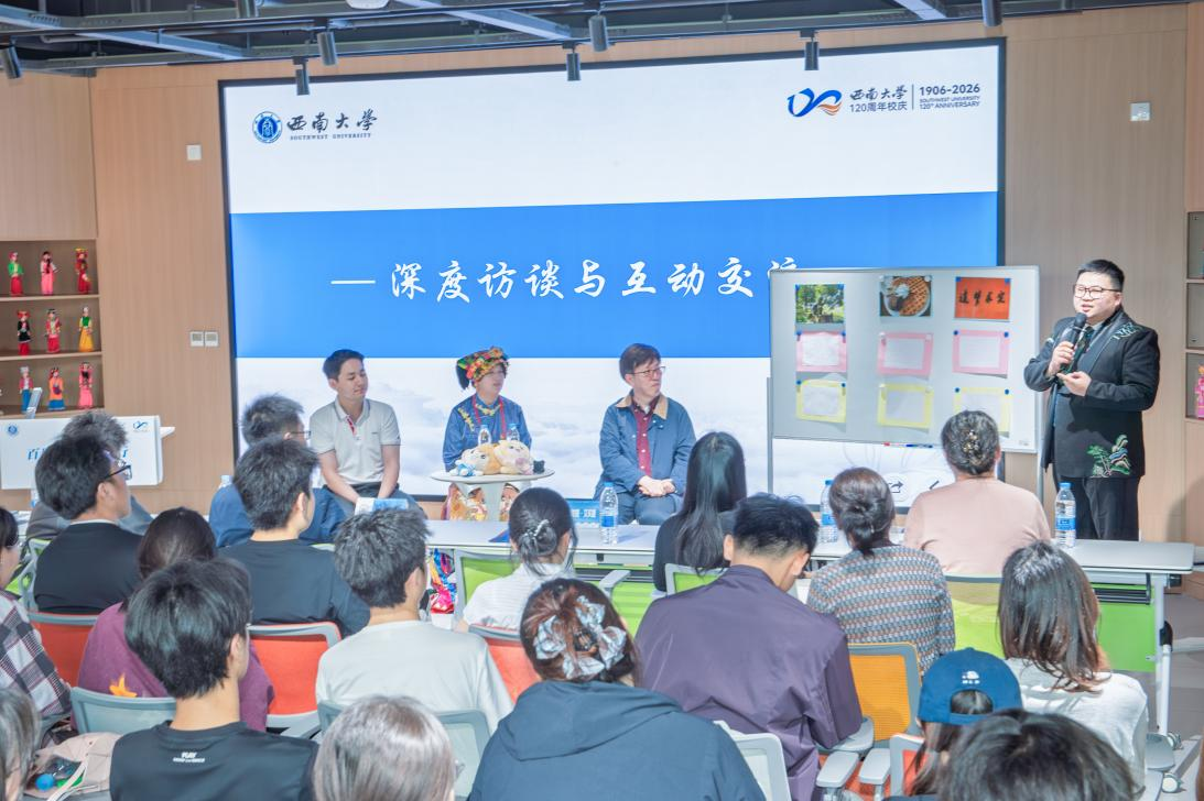 深度访谈与互动交流环节,主持人以“一张老照片、一组难忘数字、一个关键词”为情感线索,依次邀请三位校友回望在西大的求学时光。从定格青春记忆的老照片,到镌刻成长足迹的难忘数字,再到浓缩岁月深情的关键词,校友们娓娓道来求学路上的点滴温暖,畅谈成长关键节点的选择与思考,重温与母校相伴的美好岁月,现场氛围温情融融,让在场学子深受触动。