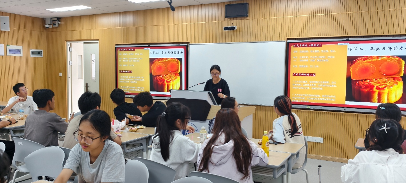 活动伊始,任老师开场致辞,活跃气氛。然后由班委为同学们讲解了中秋节的由来及月饼的发展历史。从唐代的“胡饼”到明代的“团圆饼”,月饼不仅是传统节令食品,更承载着深厚的文化内涵。同学们在聆听中感受到了中华饮食文化的源远流长,了解到食品人所需要具备的专业知识与责任担当。
